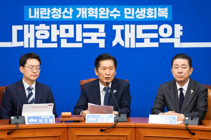 (서울=뉴스1) 조소영 김세정 임세원 기자 = 정청래 더불어민주당 대표는 19일 "국민께 위임받은 권한임에도 무소불위의 권력을 휘두르며 국민 위에서 군림하는 세력이 있다"며 "그러나 민주당 70년 역사가 증명하듯이 국민과 함께 당원과 함께라면 우리는 반드시 이길 수 있다"고 말했다.