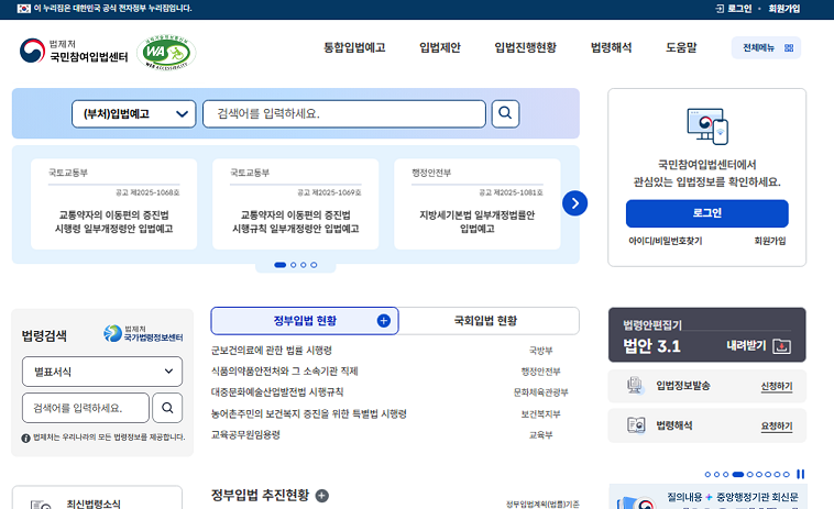 19일 법제처는 별개로 운영하던 정부입법지원센터와 국민참여센터를 국민참여입법센터로 통합해 새롭게 서비스를 시작했다.