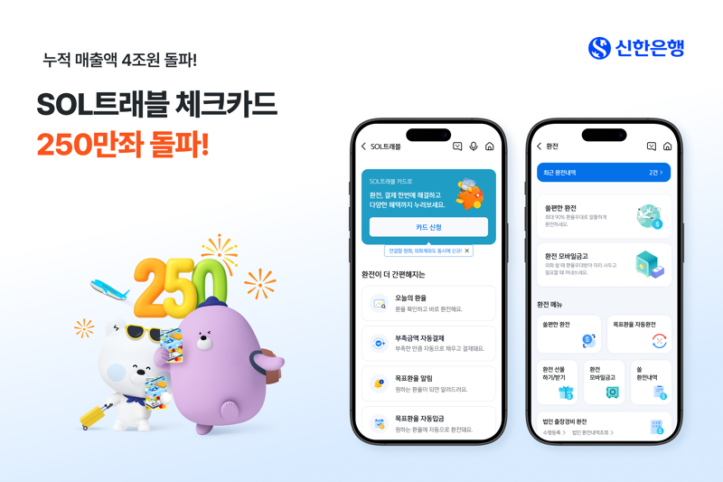 SOL트래블 체크카드는 지난 24년 2월 출시이후 누적 환전액 미화 17억달러, 해외 결제액 2조원을 달성했다.