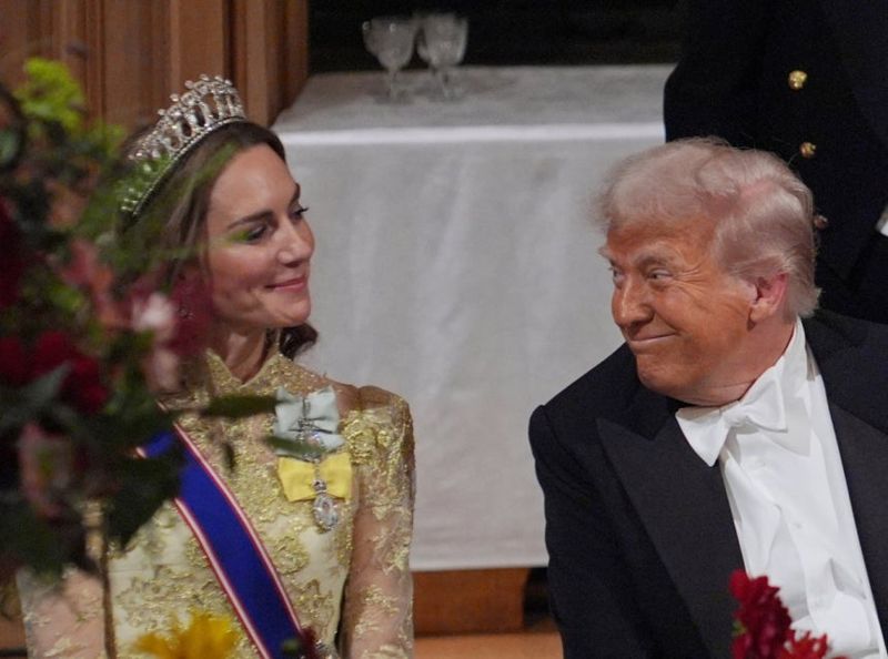 [파이낸셜뉴스] 영국을 국빈 방문한 도널드 트럼프 미국 대통령 만찬 자리에서 케이트 미들턴 왕세자빈을 바라보며 미소 짓는 장면이 화제다.