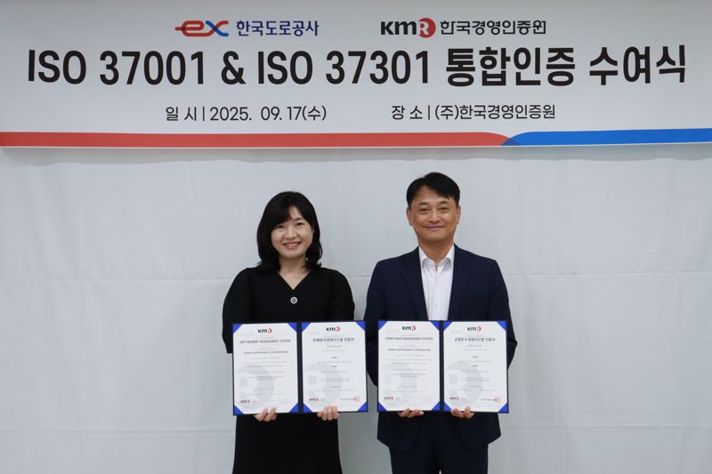 도로공사 관계자는 "이번 ISO 37001·37301 인증은 공사의 윤리·준법경영 체계가 국제적 신뢰성을 확보했다는 상징적 성과"라며 "앞으로도 ESG 경영을 실현하는 공기업으로서 투명성과 책임성을 강화하고 국민의 신뢰에 부응하겠다"고 말했다.