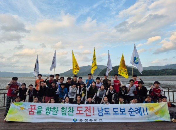 용정중학교는 2학기 개학과 함께 3학년 학생들을 대상으로 '남도순례' 도보 체험학습을 실시했다. 남도순례는 해남 땅끝마을에서 출발하여 강진과 장흥을 거쳐 보성에 이르는 총 120km의 구간을 3박 4일 동안 걸어서 완주하는 프로그램으로 진행됐다. 학생들은 하루 평균 30km 이상을 걸으며 인내와 도전 정신을 기르고, 팀워크와 배려심을 체득했다.
