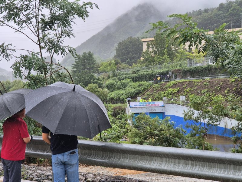 현장을 내려다볼 수 있는 왕산면행 도로변은 즉석 관람석이 됐다. 차를 세워둔 시민들은 빗줄기 속에서도 방류 광경을 지켜보며 "자연이 이렇게 위대한 줄 몰랐다", "물이 이렇게 소중한 것이었구나"라며 연신 감탄했다.