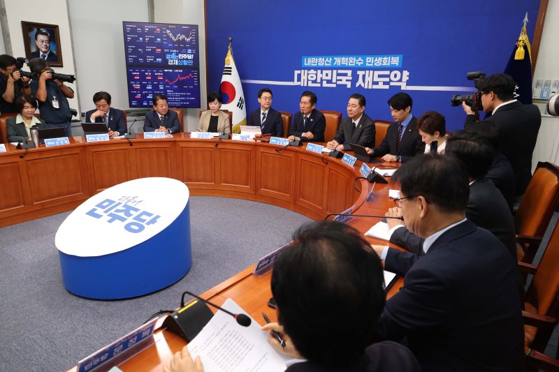 [서울=뉴시스] 이창환 기자 = 더불어민주당은 20일 여당이 제기한 조희대 대법원장·한덕수 전 국무총리 회동 의혹을 놓고 '민주당은 해산해야 할 위헌 정당'이라고 비판한 국민의힘을 향해 "정치적 물타기를 멈추시고, 사법 개혁의 본질인 내란 세력 청산과 사법 정의 실현에 동참하시길 바란다"고 말했다.