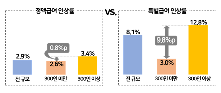 대기업 5.7% 오를 때 중소기업은 2.7% 상승에 그쳐