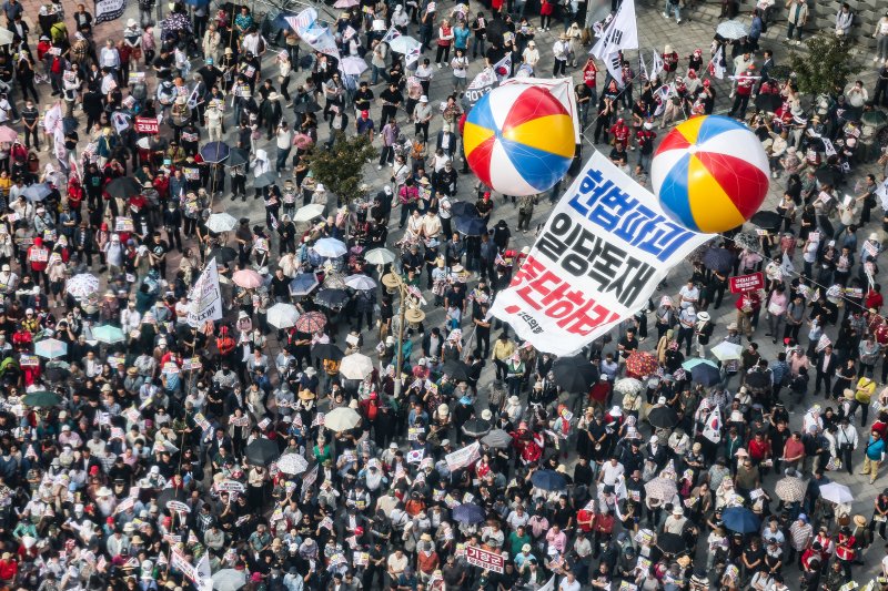 행사 현장에서는 참석자들이 윤석열 전 대통령 사진을 담은 피켓을 들고 '윤 어게인'을 연호하는 모습도 목격됐다.