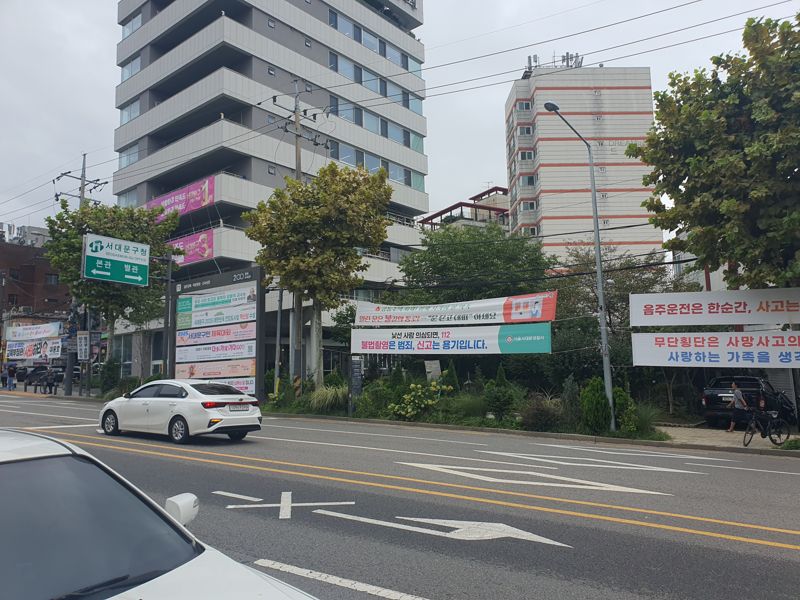 지난달 18일 오전 서울 서대문구청 앞 도로. 박모씨(52)는 가로수에 줄지어 걸린 각종 행사 현수막을 가리키며 말했다. 그의 손끝에는 '구민 체육대회·가족운동회' 등 지역 행사 알림 현수막과 함께 '음주운전·무단횡단 금지' 같은 교통안전 캠페인, 정당 홍보물까지 겹겹이 매달려 있었다. 대부분 플라스틱 계열 합성수지로 만들어진 이 현수막들은 며칠 쓰이다 기간이 끝나면 수거돼 버려진다.