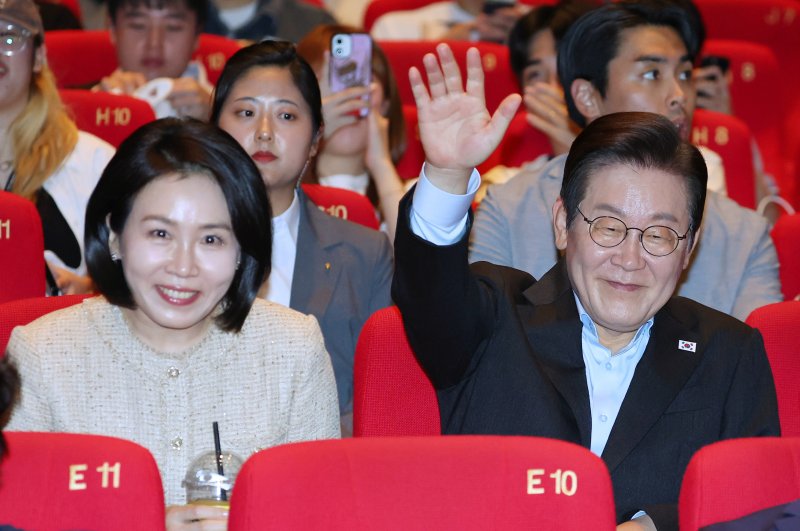 지난 20일 오후 이 대통령은 부인 김혜경 여사와 함께 부산 해운대구 영화의전당 시네마테크에서 '극장의 시간들'을 관람한 뒤 감독과 출연 배우, 일반 관객들이 함께하는 대화(GV)에 참석했다.
