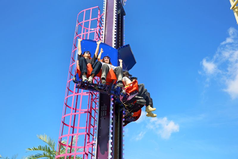 ‘뱅앤드롭’은 약 10m 높이까지 수직 상승과 하강을 반복하는 어트랙션으로 아이부터 어른까지 모두가 신나는 스릴을 느낄 수 있다.