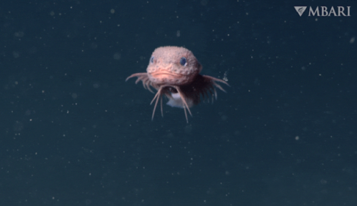 핑크빛 몸에 동그란 머리, 울퉁불퉁한 피부, 파란색 눈을 가진 이 물고기는 수심 1만700피트(약 3170m) 지점에서 발견됐으며 꼼치(Snailfish)과로 추정된다.