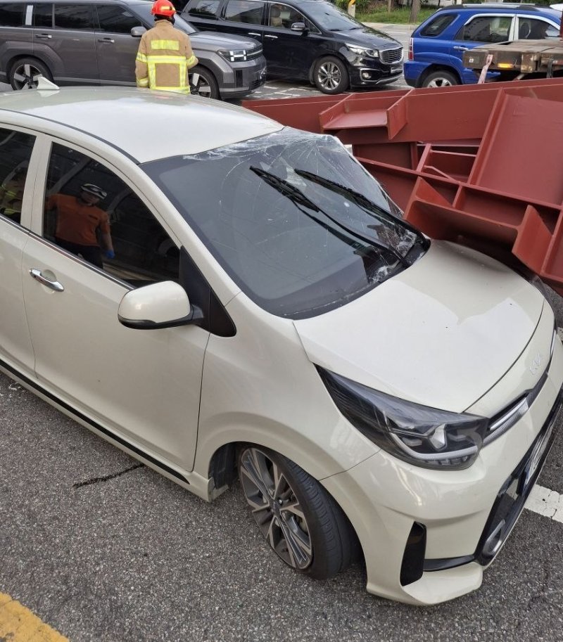 당시 모닝 차량에는 운전자 등 2명이 탑승해 있었으나, H빔이 좌측으로 빚겨 맞으면서 인명 피해는 발생하지 않았다.