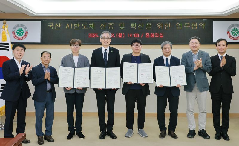 대전시는 22일 시청에서 한국전자통신연구원(ETRI), 리벨리온, 퓨리오사AI와 ‘국산 AI 반도체 실증 및 확산을 위한 업무협약’을 맺고, 총 324억원 규모의 국산 AI 반도체 기반 마이크로데이터센터 사업에 본격 착수했다.