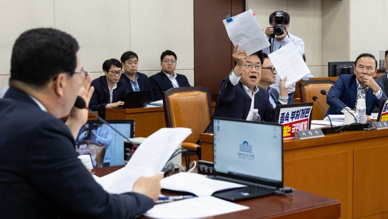 국회 행안위는 22일 전체회의를 열고 더불어민주당의 주도로 정부조직법 개정안을 의결했다. 국민의힘 의원들은 민주당의 일방적인 의사 진행에 반발해 전원 퇴장하면서 표결에 불참했다.