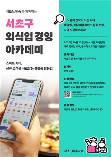 (서울=연합뉴스) 정준영 기자 = 서초구(구청장 전성수)는 외식업 경영자들의 경쟁력 강화와 지역상권 활성화를 위해 '제7기 서초구 외식업 경영 아카데미' 수강생을 모집한다고 23일 밝혔다.