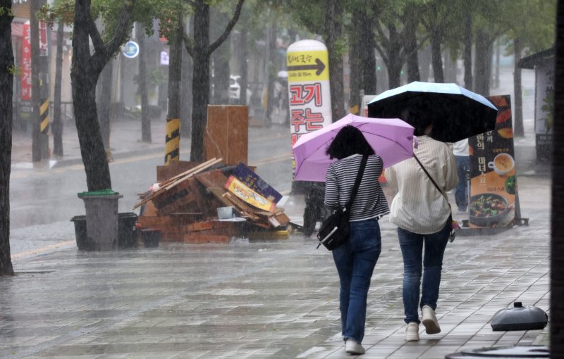 (세종=뉴스1) 황덕현 기후환경전문기자 = 수요일인 24일 전국에 가을비가 강하게 내리겠다. 서해안을 중심으로 짧은 시간에 많은 비가 쏟아지며, 일부 지역은 시간당 30~50㎜에 달하는 집중호우가 예상된다. 예상 강수량은 최대 100㎜가량이다.