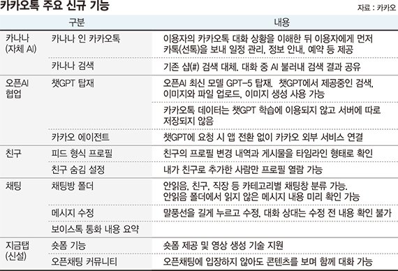 카카오는 AI 브랜드인 '카나나'를 활용한 AI 기술 라인업도 공개했다. 카나나는 타 생성형 AI챗봇과 다르게 이용자에게 먼저 말을 걸어주는 AI로, 대화 속에서 필요한 맥락을 이해하고 먼저 메시지를 보내 일정관리, 예약, 구매, 지식검색 등 일상에 필요한 활동들을 제안한다. 이러한 과정은 온디바이스 AI 모델인 '카나나 나노'를 활용해 구현된다. 카카오에 따르면 온디바이스 AI 환경에서 데이터 유출이나 학습 걱정 없이 스마트폰 안에서 작동하며 안전하게 서비스를 이용할 수 있다.