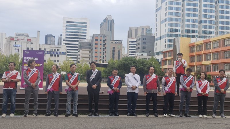 한국자유총연맹부산광역시지부 회원들은 이날 버려진 꽁초 등 쓰레기 수거 활동과 함께 전국체전 성공개최 홍보활동을 펼쳤다.