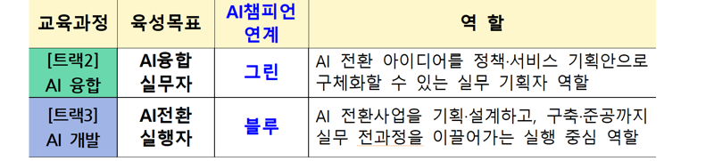 행안부 관계자는 "공공 AI역량 트랙과 AI챔피언 양성을 통해 단순 교육이 아니라 현장의 문제를 해결하는 실질적 혁신을 이끌겠다"며 "각 기관의 AI전환을 실행하는 실무형 인재를 체계적으로 양성해 나가겠다"고 밝혔다.