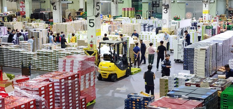 김준환 농협경제지주 창원공판장 경매부장은 “올해 농가에서 홍로(사과 품종) 수확이 빨리 이뤄져 일반 추석 선물용이나 제수용 사과 공급에는 문제가 없을 것으로 예상된다”며 “최근 하루 거래 물량을 3억 기준으로 볼 때 사과 1억, 배 1억 수준으로 사과, 배가 전체 물량의 70%를 차지한다.