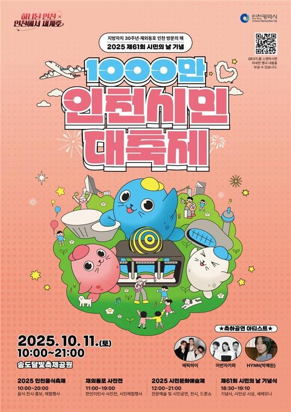 기념행사는 이날 오전 10시부터 오후 9시까지 진행된다. 행사장에서 인천 음식 축제, 시민문화예술제, 재외동포 사진전 등 다양한 프로그램이 진행된다.