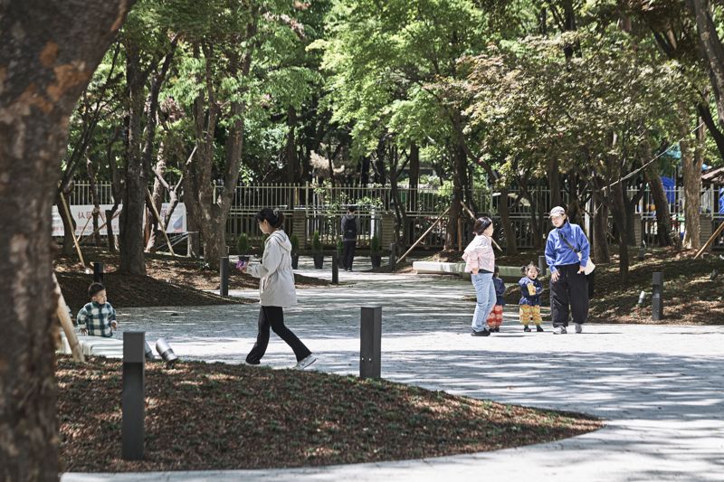 구는 명일광장을 조용한 휴식, 안전한 체류, 활기 있는 공간으로 조성하기 위해 주민·학생·상인으로 구성된 협의체를 운영하며, 기존 관목을 정비하고 폐쇄적인 공간을 유선형·개방형 구조로 개선해 안전성과 이용 편의를 높였다.