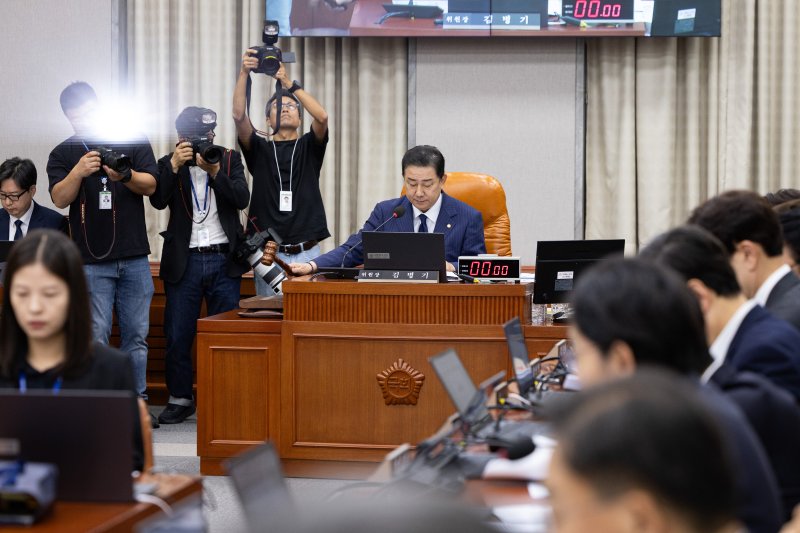 (서울=뉴스1) 임세원 기자 = 국회 운영위원회가 24일 전체 회의를 열고 '국회에서의 증언·감정 등에 관한 법률' (증감법) 개정안과 '국회기록원법'을 여당 단독으로 의결했다. 국민의힘은 표결 직전 퇴장하며 반발했다.