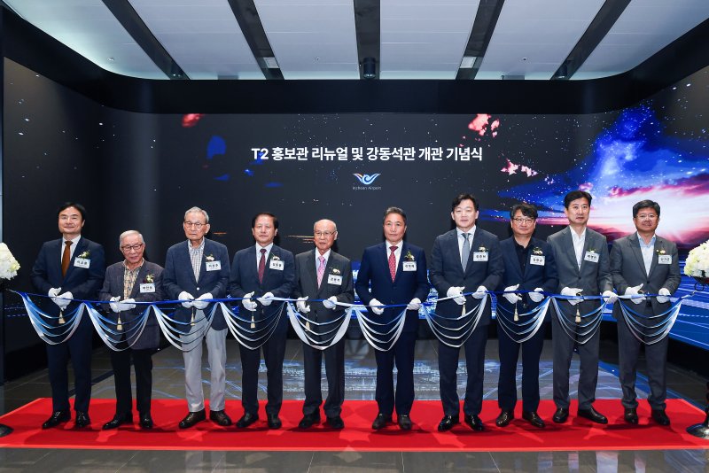 인천국제공항공사는 인천공항 주요 성과 등을 조망할 수 있는 명소인 '인천공항 홍보 전망대'의 명칭을 인천국제공항공사 초대사장의 이름을 딴 '인천공항 강동석관'으로 변경하고 시설개선 및 관람 콘텐츠를 보강해 지난 23일부터 재개관했다고 24일 밝혔다. 인천공항 제2여객터미널 일반지역 5층에서 전날 열린 인천공항 강동석관 개관 기념식에는 이학재 인천국제공항공사 사장, 강동석 초대사장, 공사 현직 및 퇴직 임직원 약 60명이 참석했다.