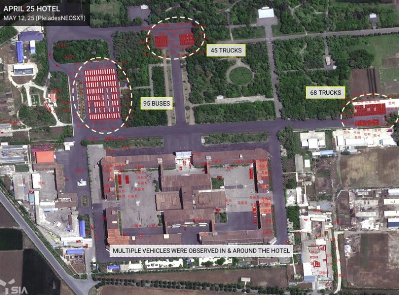 미림비행장에선 최소 1만4000명 수준의 인원을 탑승할 수 있는 트럭 약 700대가 식별됐다. 지난 5월부터는 4·25문화회관 일대에서도 트럭과 버스 약 250대가 포착됐다.