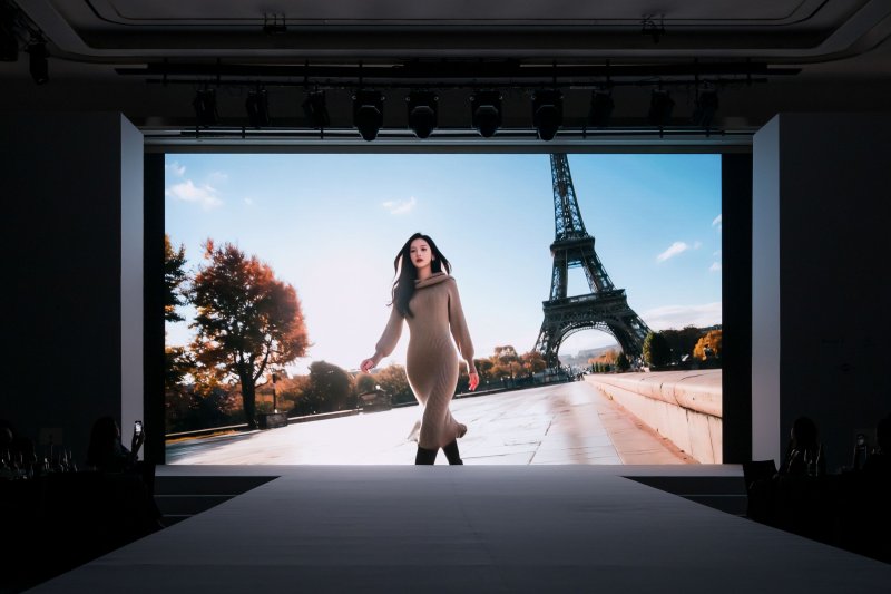 AI로 구현된 가상 모델이 글로벌 랜드마크를 배경으로 런웨이를 펼친 뒤, 실제 모델들이 런웨이에 올라 각 브랜드의 가을·겨울(FW) 제품을 선보였다.