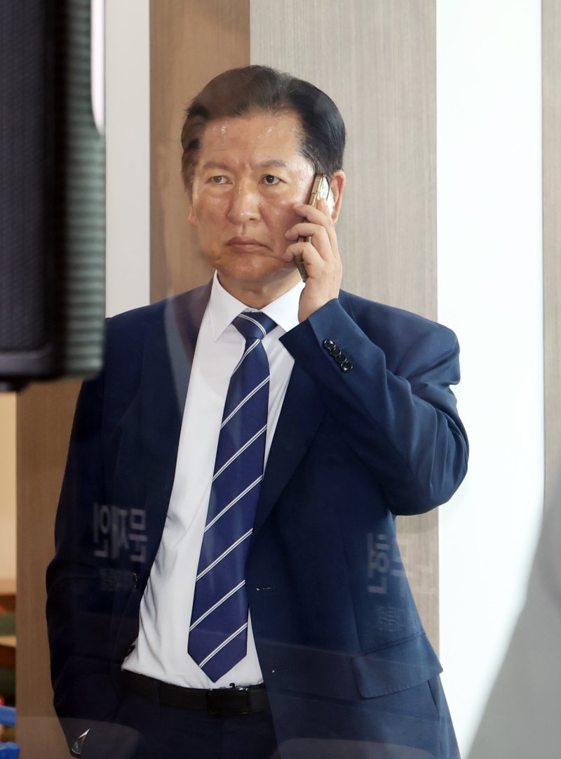 정 대표는 "민주당은 소속된 국회의원이 단 한 명도 예외없이 흔들림 없이 이재명 정부의 정부조직법을 뒷받침하고 이재명 정부의 성공을 위해 한마음 한뜻으로 찰떡같이 단결하고 차돌처럼 단단하게 당정대가 한 몸 한 뜻으로 나아가야 한다"며 "내란의 완전한 청산과 이재명 정부의 성공이라는 시대적 과업, 시대적 사명을 완수하기 위해서 더욱 일치단결해 이 고비를 잘 넘기자"고 했다.