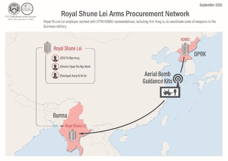 미얀마 소재 무기 조달 기업 '로열 순 레이' 유한회사도 제재 대상에 올렸다.