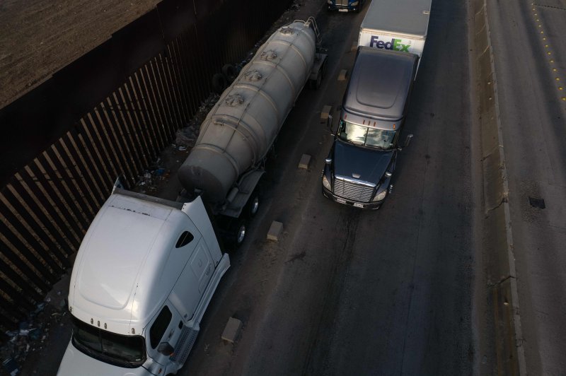 미국-멕시코 국경지역에서 촬영된 대형 트럭들.AFP연합뉴스