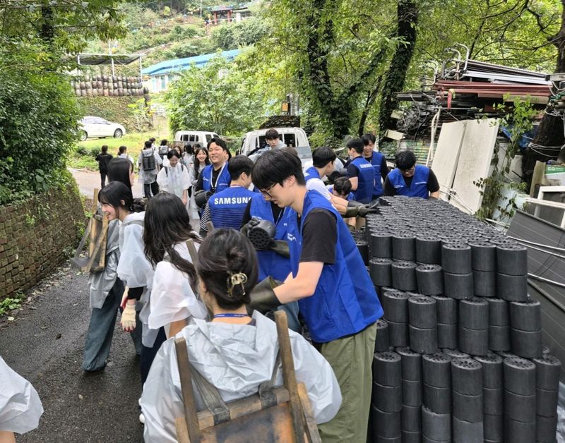 행사는 지역 상생을 위한 사회 공헌 활동으로 직원들은 두 그룹으로 나뉘어 연탄 나르기와 보육원 청소 봉사활동에 참여했다.