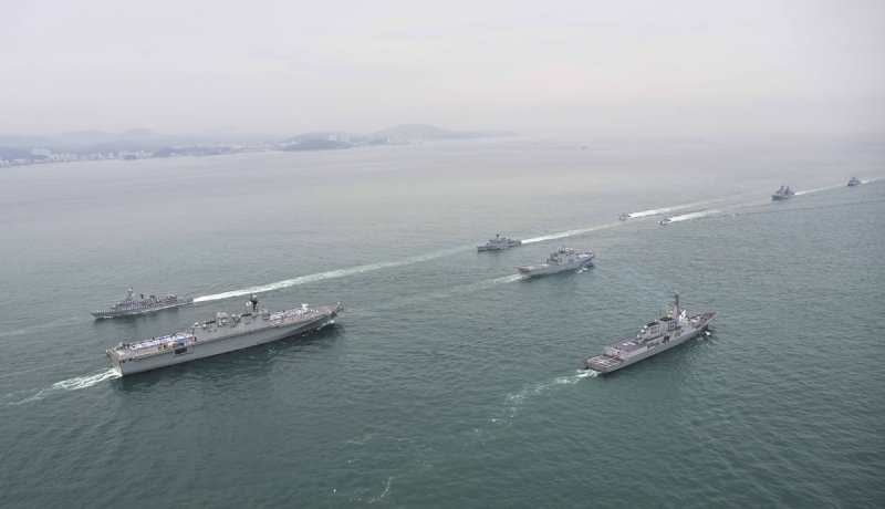 다음으로 해역함대 전력을 대표해 구축함 양만춘함(DDH-Ⅰ, 3200t급), 호위함 인천함(FFG, 2500t급), 유도탄고속함 조천형함(PKG, 450t급), 신형 고속정(PKMR, 230t급), 기뢰전 전력으로 기뢰부설함 남포함(MLS-Ⅱ, 3000t급), 소해함 고성함(MSH, 730t급)이 항해했다.