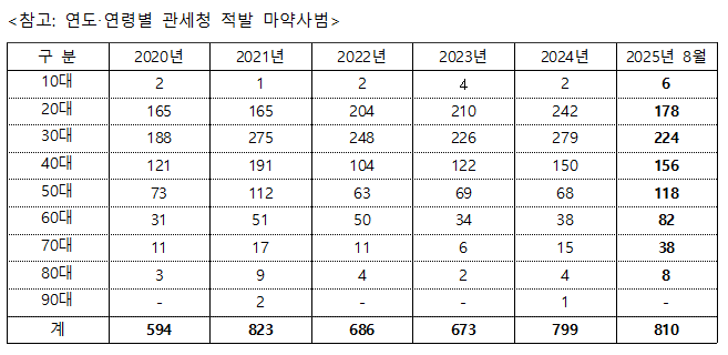 [파이낸셜뉴스] 올해 8월 기준 마약 밀수 적발 인원이 지난해 총 인원을 넘어선 것으로 26일 나타났다.