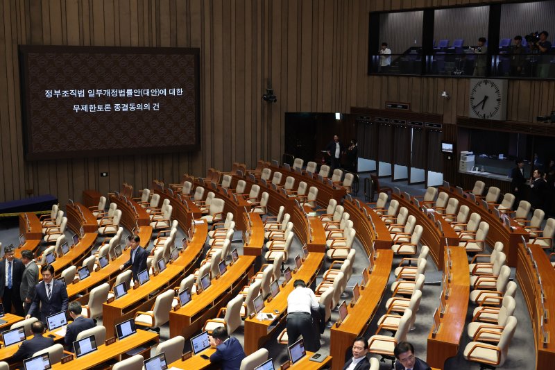 국회는 이날 본회의를 열고 정부조직법 개정안을 재석 180명 중 찬성 174명, 반대 1명, 기권 5명으로 가결했다. 정부조직법 개정안 처리에 반대하며 필리버스터(무제한토론)에 나선 국민의힘은 표결에 참여하지 않았다.