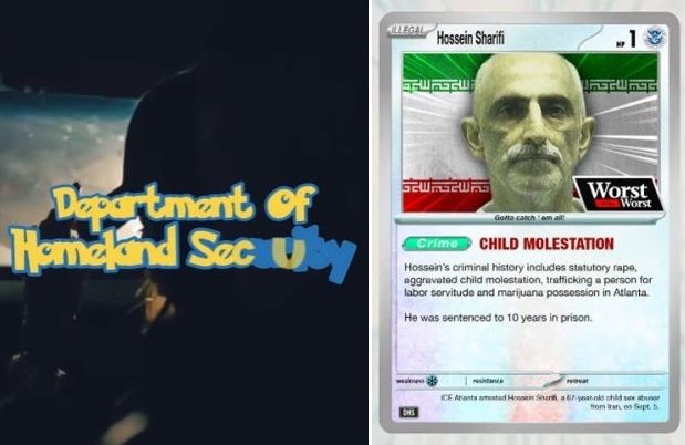 영상 말미에는 체포된 불법 이민자들이 마치 '포켓몬 카드'처럼 묘사돼 올라왔다.