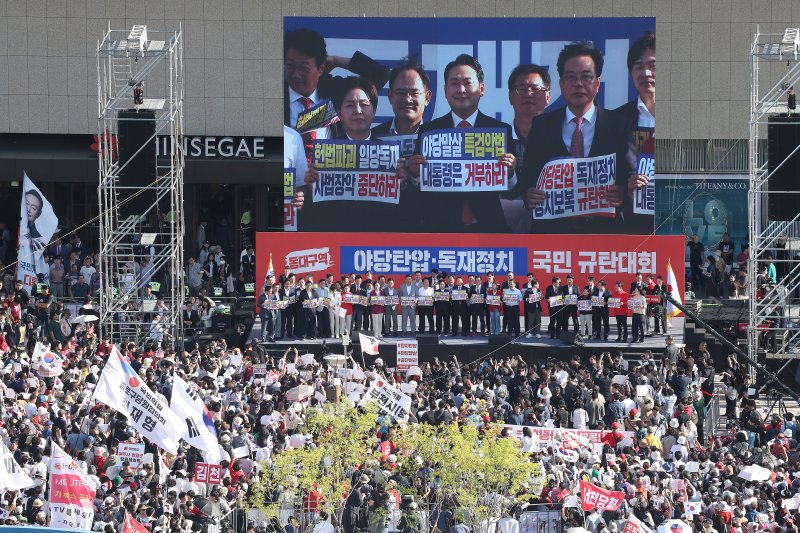 국민의힘 한 재선 의원은 뉴스1에 "(서울 광화문 장외집회가) 마지막 장외집회가 됐으면 하는 마음"이라며 "강성 지지층의 (장외투쟁) 요구가 있는 건 사실이지만, 국정감사도 놓을 순 없는 것 아닌가"라고 했다.
