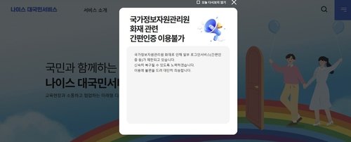 교육부 산하기관 홈페이지인 나이스는 "국가정보자원관리원 화재로 인해 일부 로그인서비스(간편인증 등)가 제한되고 있다"면서 "신속히 복구될 수 있도록 노력하겠다. 이용에 불편을 드려 대단히 죄송하다"고 이용 제한 상황을 고지했다.