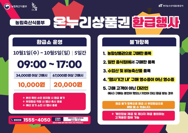 10월 1∼5일 전통시장서 국산 농축수산물 구매 시 온누리상품권 환급