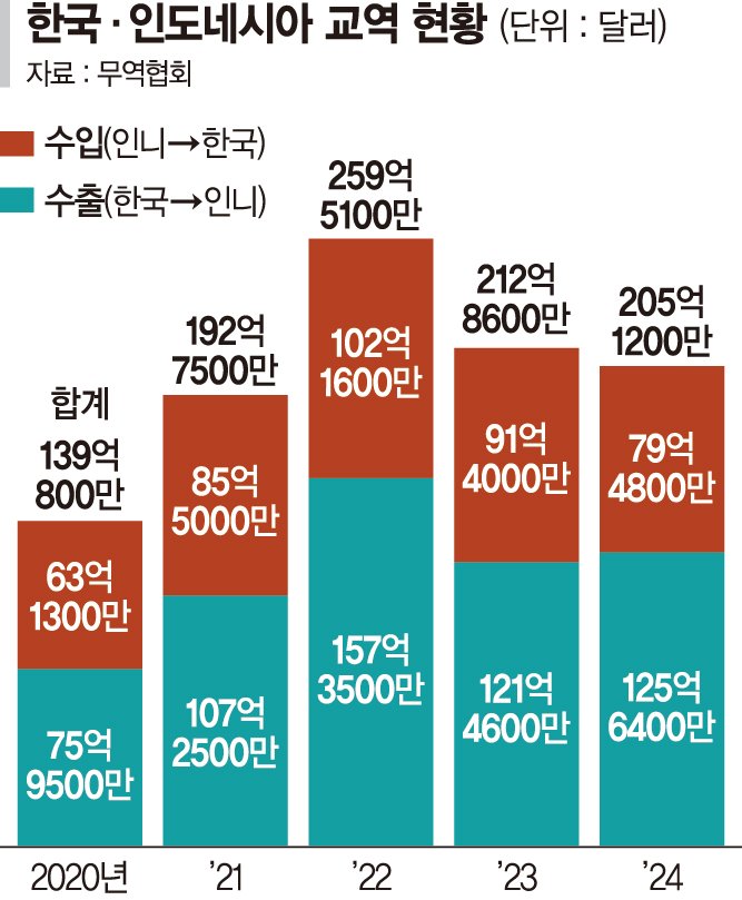 헤라완 대사에 따르면 양국 교역은 꾸준히 확대되고 있다. 2024년 교역액은 201억3000만달러(약 28조4517억원)로 최근 5년간 10% 가까이 증가했다. 같은 해 한국의 인도네시아 투자액은 연간 29억달러(약 4조988억원)로 사상 최대치를 기록했다.