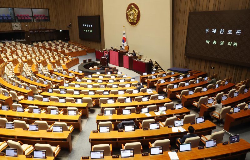 필리버스터는 시작 후 24시간이 지나면 재적 의원 5분의 3(현재 179명) 이상의 찬성으로 종결할 수 있다. 민주당(166명)과 조국혁신당(12명), 진보당(4명), 기본소득당(1명), 사회민주당(1명) 등 의석 수를 감안하면 민주당이 토론을 종결하고 법안 표결에 들어갈 수 있다. 앞서 민주당은 전날 무제한 토론 종결 동의안을 제출했다.