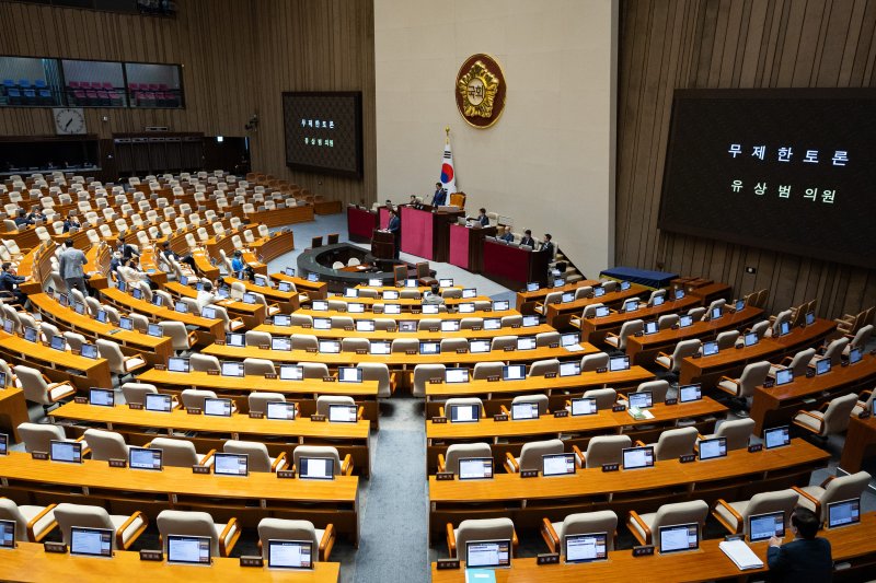 (서울=뉴스1) 서상혁 기자 = 국회가 29일 국회에서의 증언·감정 등에 관한 법률 일부개정안을 의결한다. 정부조직법 개정안 등에 반발해 시작한 국민의힘의 4박5일 무제한 토론(필리버스터)도 마무리된다.