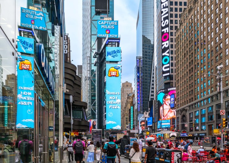 원 타임스 스퀘어 (One Times Square)’ 건물 외벽 대형 전광판을 통해 특별 제작한 밀키스 광고를 선보이는 한편, 팝업부스에서는 밀키스 오리지널과 딸기, 포도, 복숭아 등 5종의 제품 시음 행사를 진행했다. SNS인증, 제품 맞추기 챌린지, 포토박스 이벤트 등도 펼쳤다.