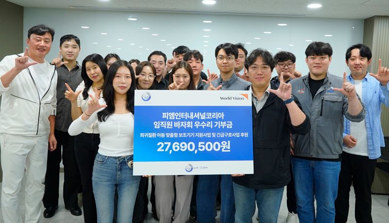 PMIK 관계자는 “임직원 자선 바자회 기부 행사를 통해 십시일반 조성된 우수리 기부금 2769만원을 국제구호개발 NGO 단체인 월드비전에 전달했다”며 “이번 기부는 월드비전과 저소득 희귀난치질환 지원 및 긴급구호사업 후원 협약을 이행하기 위한 것”이라고 말했다.