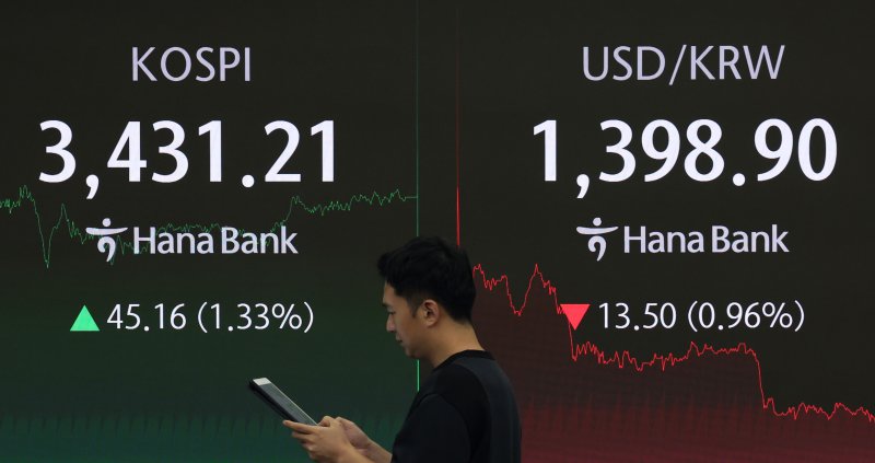 29일 한국거래소에 따르면 코스피 지수는 전 거래일 대비 45.16p(1.33%) 오른 3431.21에 거래를 마쳤다. 이날 지수는 전장 대비 0.84% 오른 3414.43에 출발했다.