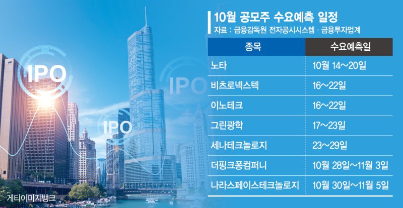 한편, 증권가에서는 10월을 기점으로 IPO 시장의 성수기가 본격화될 것으로 보고 있다. 통상 4·4분기에는 연내 상장을 목표로 하는 기업들의 수요가 몰린다.