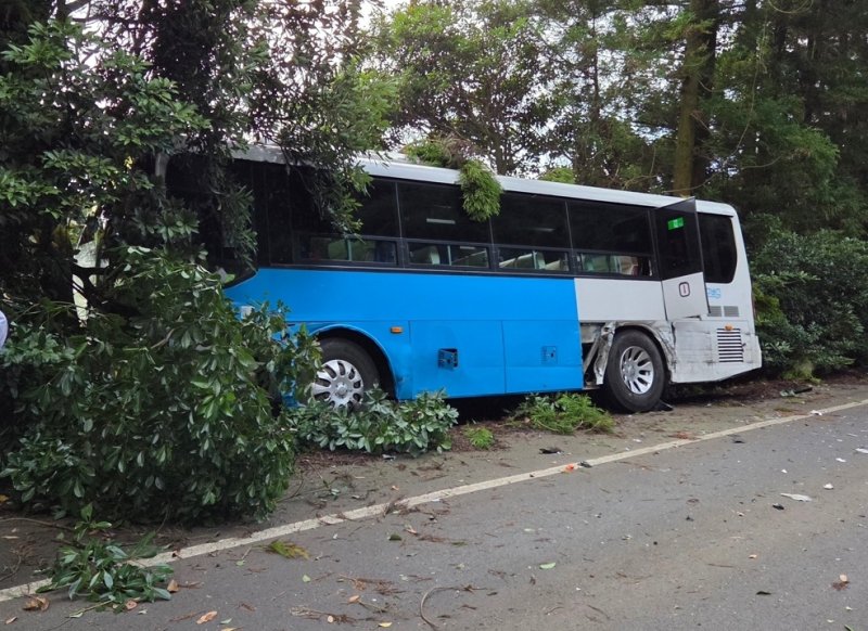 이 사고로 버스 탑승객 30여 명 중 영국인 A 씨(70·남), 중국인 B 씨(50대·여)와 C 씨(40대·남), 제주도민 2명이 허리, 팔, 발목 등을 다쳐 제주시 소재 병원으로 이송됐다.