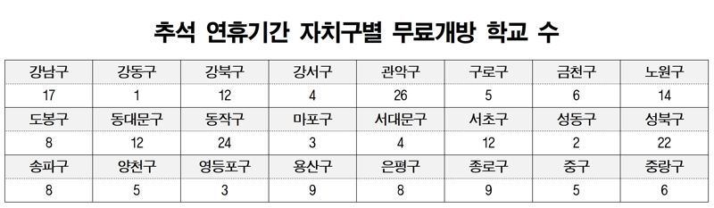 서울시교육청은 추석 연휴기간 주차 불편 해소를 위해 학교를 개방키로 했다고 9월 30일 밝혔다.