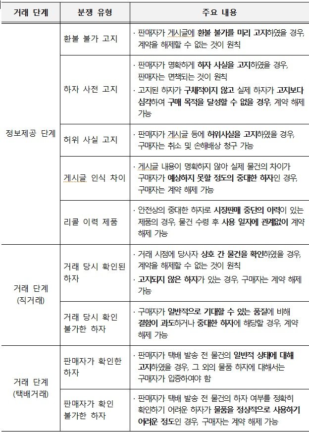 개인 간 중고거래 시장의 성장과 함께 판매자와 구매자 간의 분쟁도 지속적으로 증가해 왔다. 현장에서는 일관성 있는 분쟁 해결을 위한 배상 비율·방식 등에 관한 기준 제시의 필요성이 지속적으로 제기됐다.